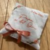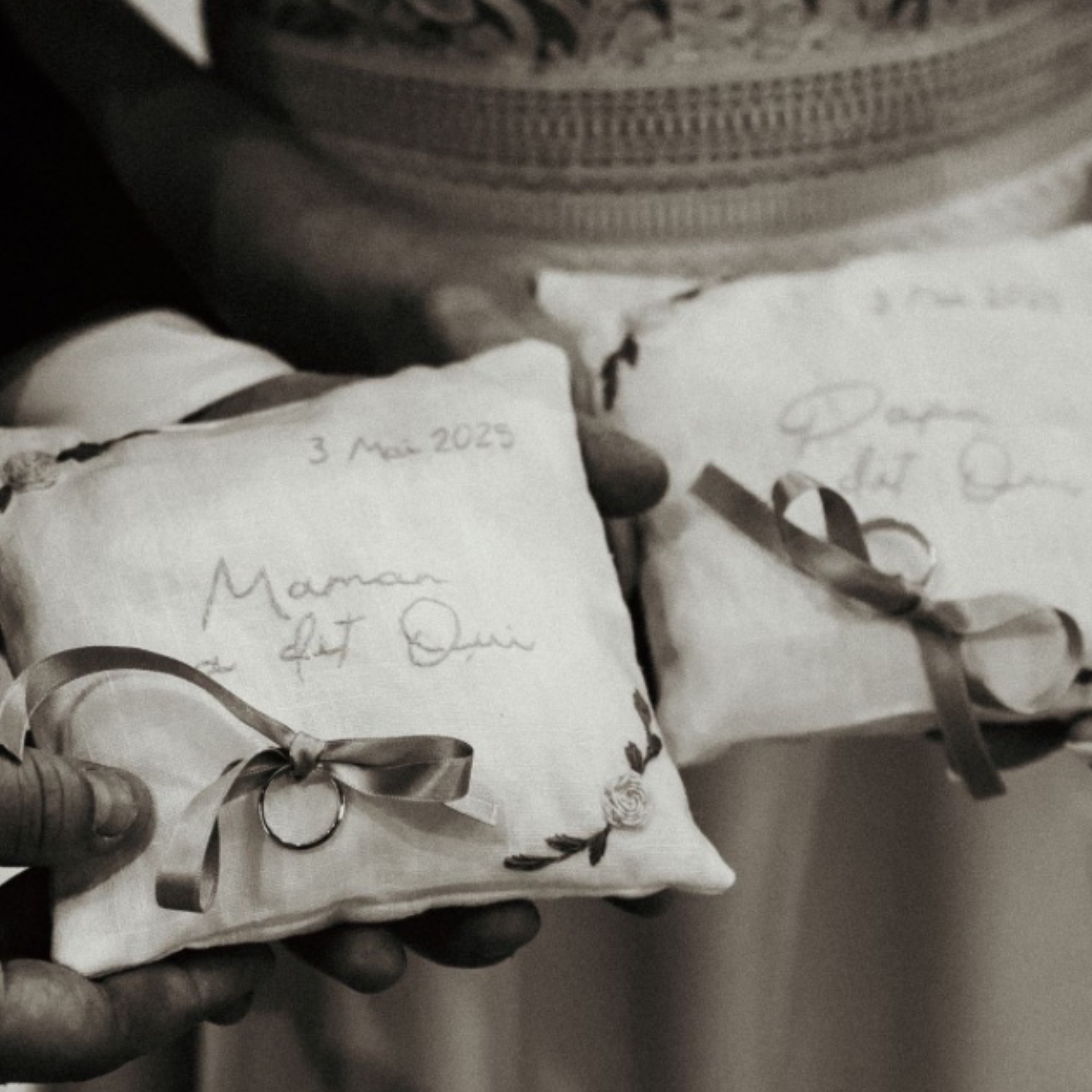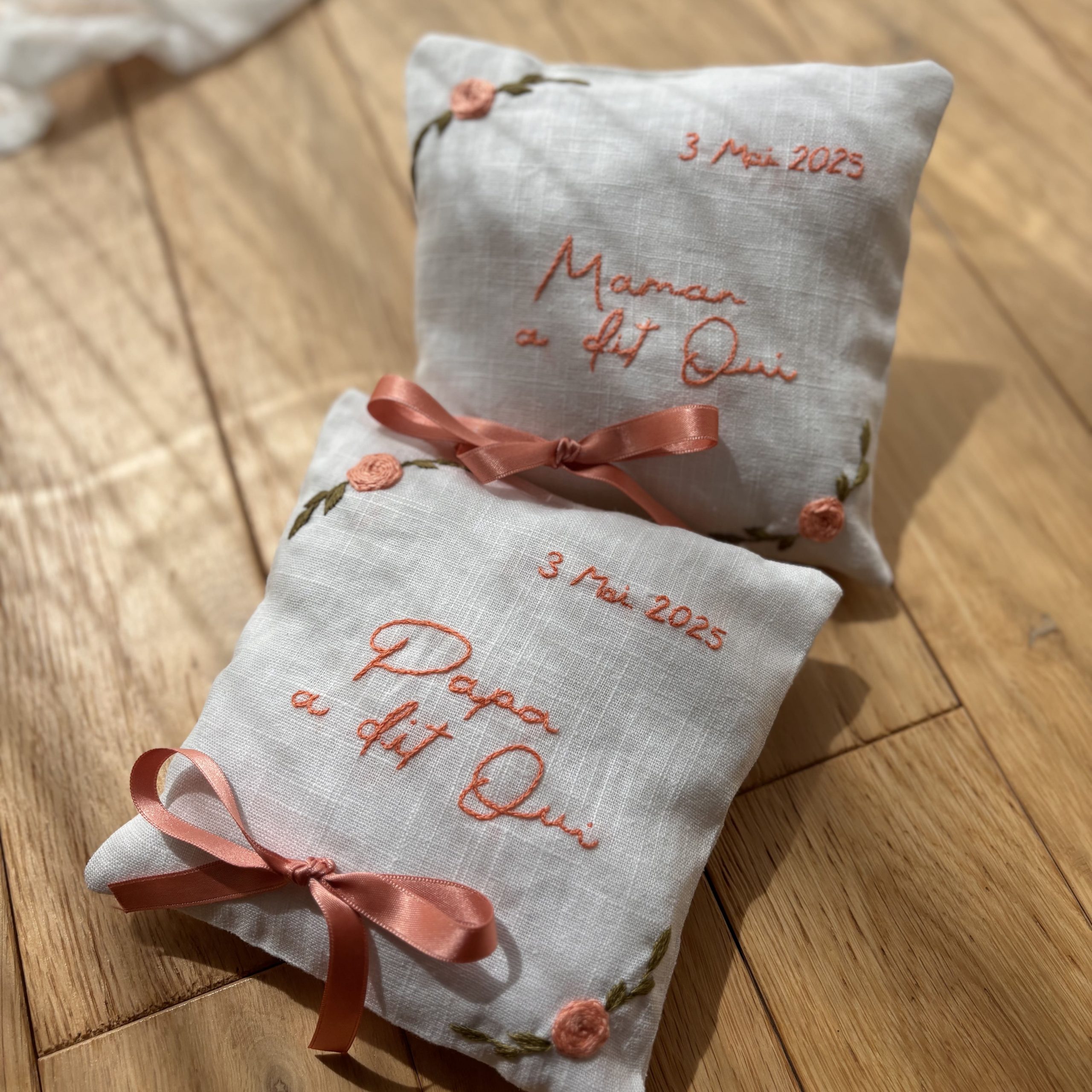 Je t’imagine déjà sourire en voyant ton coussin alliances brodé tenir fièrement vos anneaux !